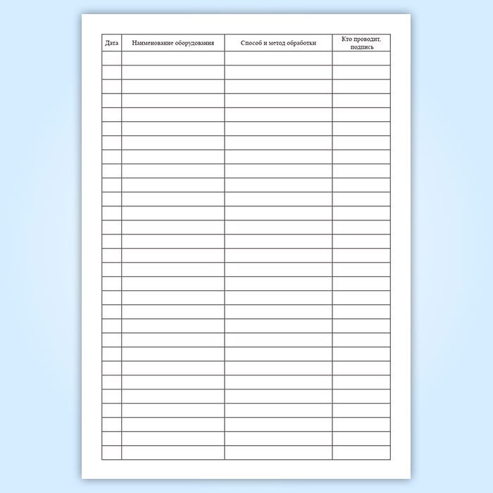 Журнал по обработке оборудования в Черкесске купить
