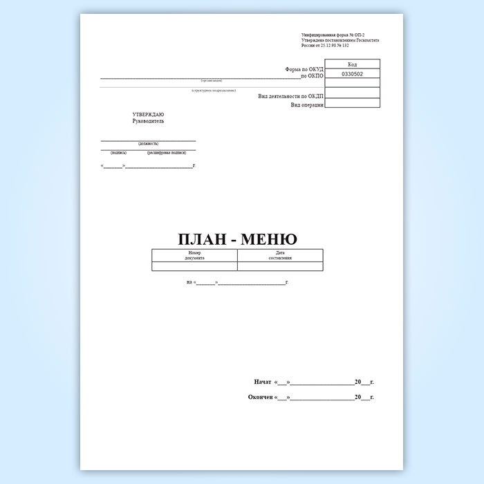 Журнал План-меню (форма ОП-2) в Черкесске купить