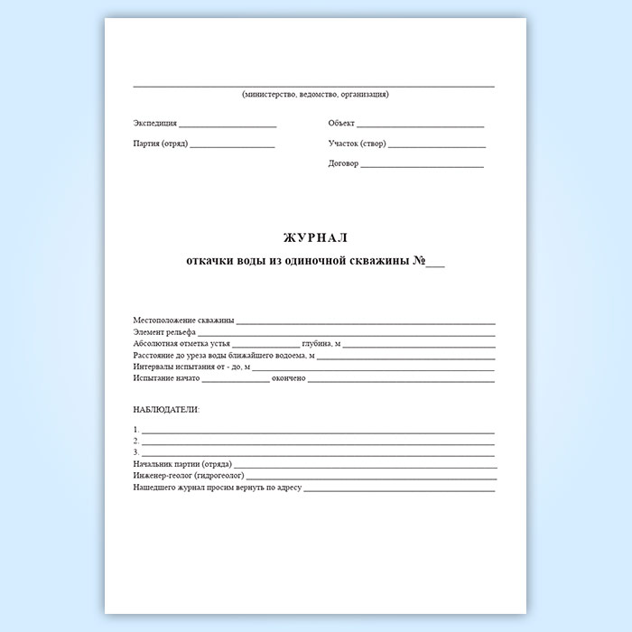 Журнал откачки воды из одиночной скважины (форма УГ-36) в Черкесске купить