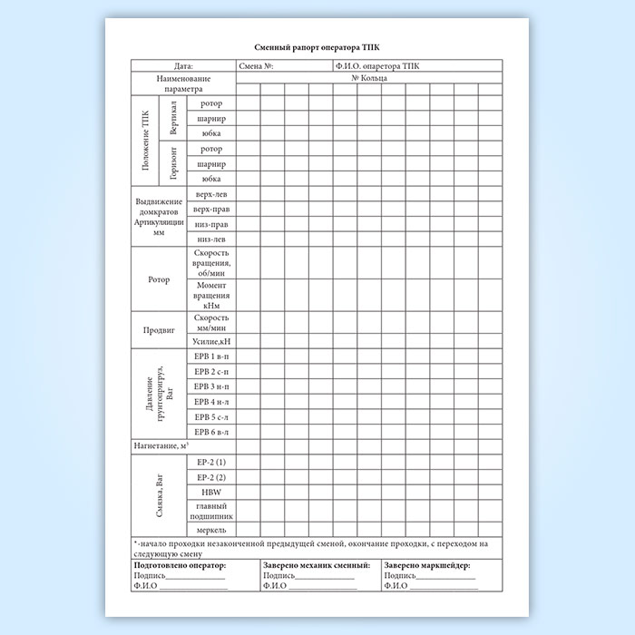 Журнал сменных рапортов операторов тоннелепроходческого комплекса в Черкесске купить