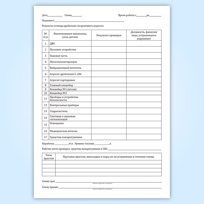 Журнал приема-сдачи смены дробильно-погрузочного агрегата в Черкесске купить