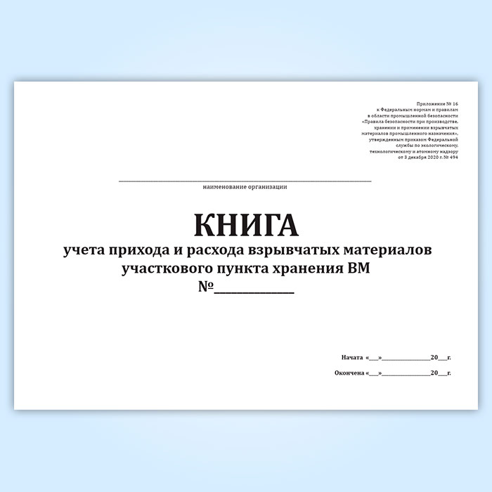 Книга учета прихода и расхода взрывчатых материалов участкового пункта хранения ВМ в Черкесске купить
