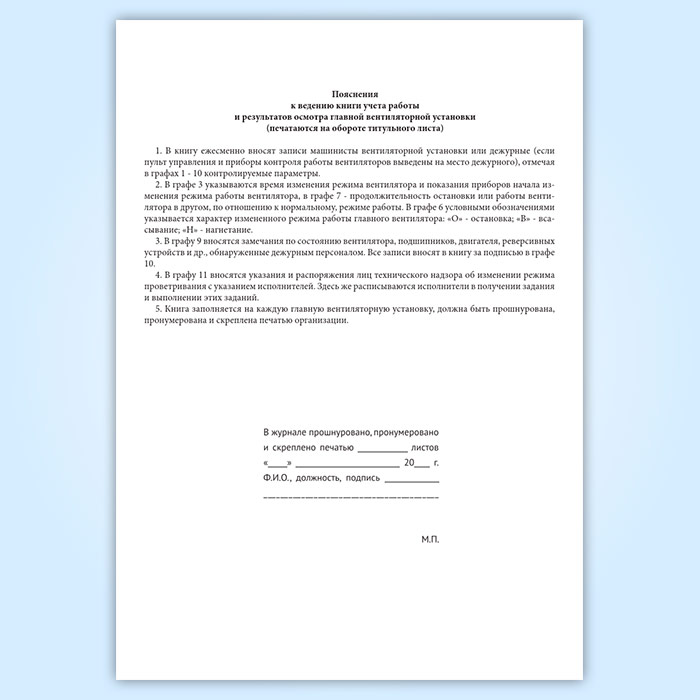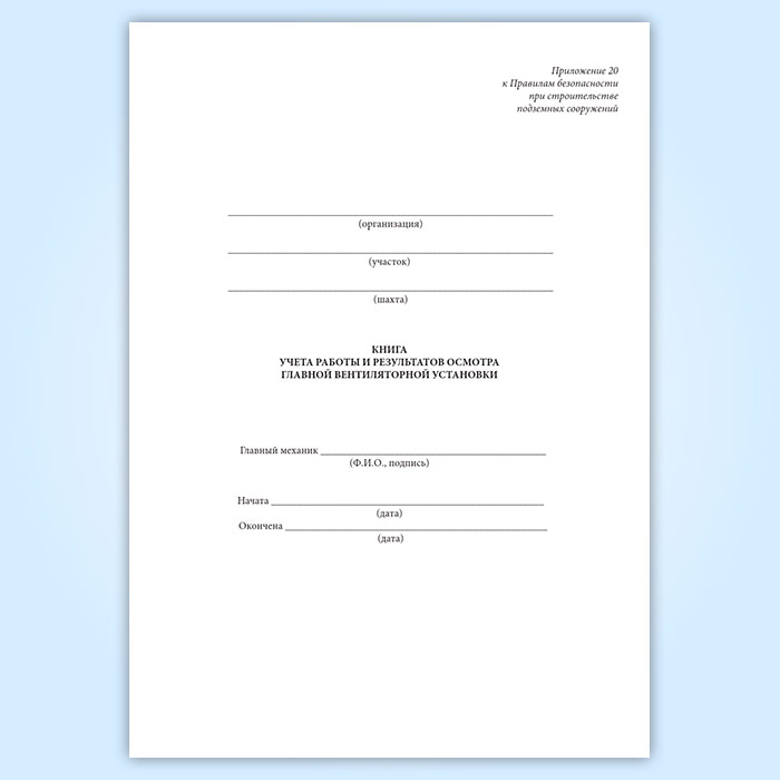 Книга учета работы и результатов осмотра главной вентиляторной установки в Черкесске купить