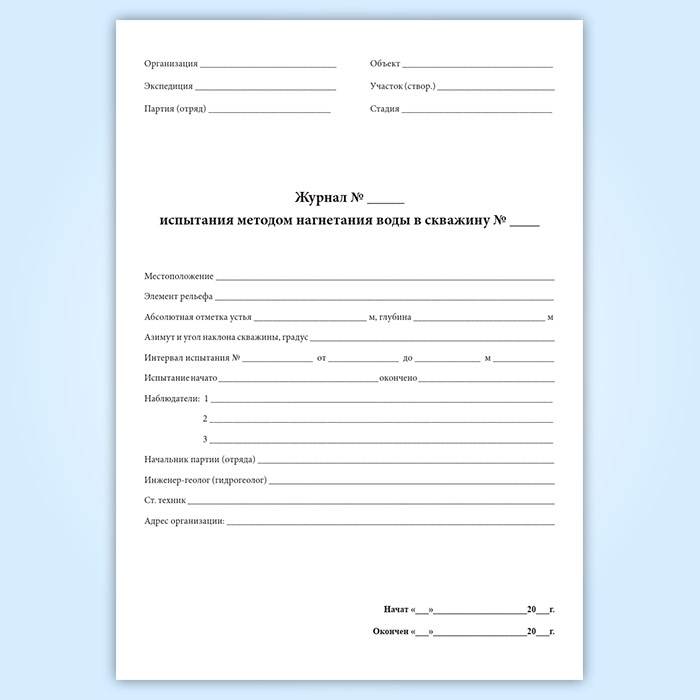 Журнал испытания методом нагнетания воды в скважину в Черкесске купить