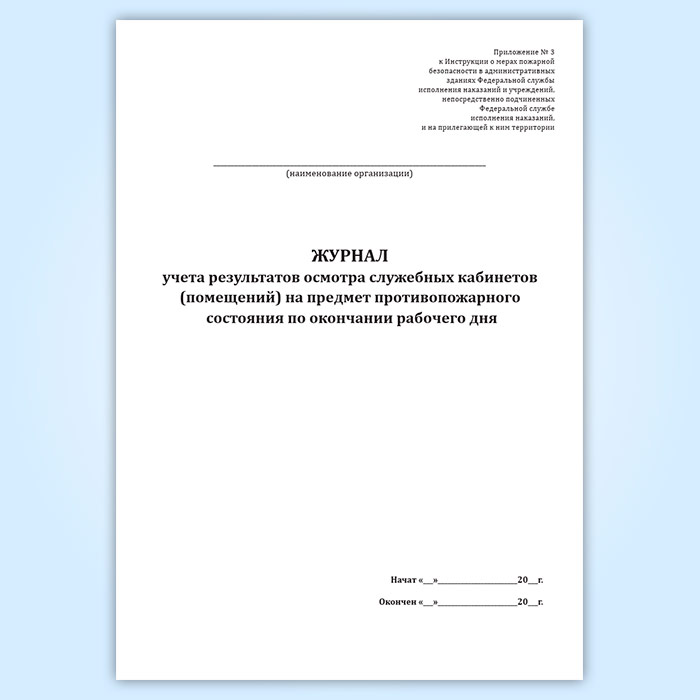 Журнал учета результатов осмотра служебных кабинетов (помещений) на предмет противопожарного состояния по окончании рабочего дня в Черкесске купить