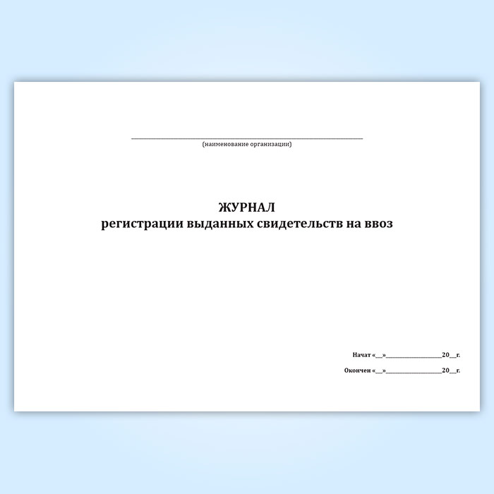 Журнал регистрации выданных свидетельств на ввоз в Черкесске купить