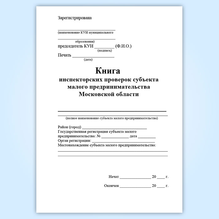 Книга инспекторских проверок субъекта малого предпринимательства Московской области в Черкесске купить