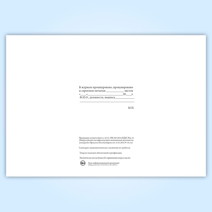 Вы получаете печатную продукцию прошнурованной и c местом для вашей печати в соответствии с действующими нормативными документами: