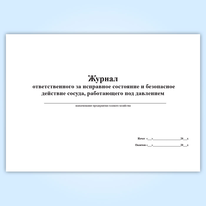 Журнал ответственного за исправное состояние и безопасное действие сосуда, работающего под давлением в Черкесске купить