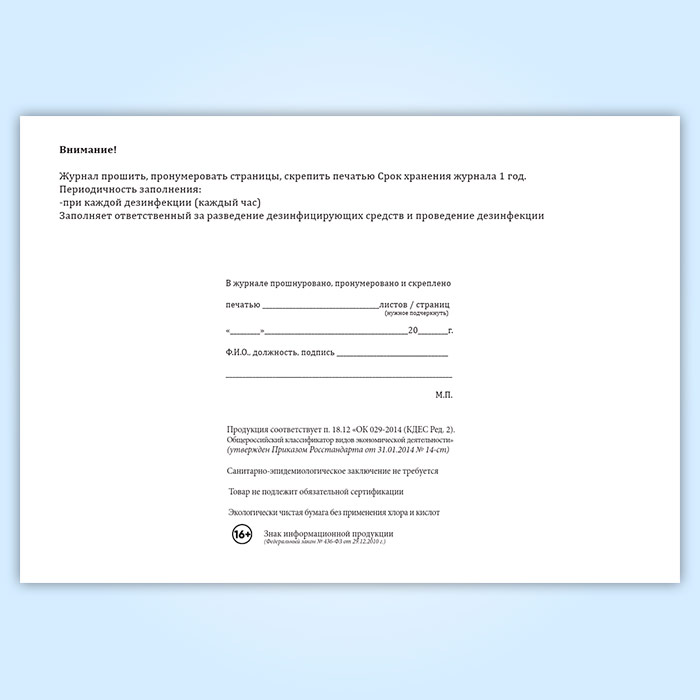 Журнал учета дезинфекций поверхностей в рамках профилактики распространения коронавирусной инфекции COVID-19 в Черкесске купить