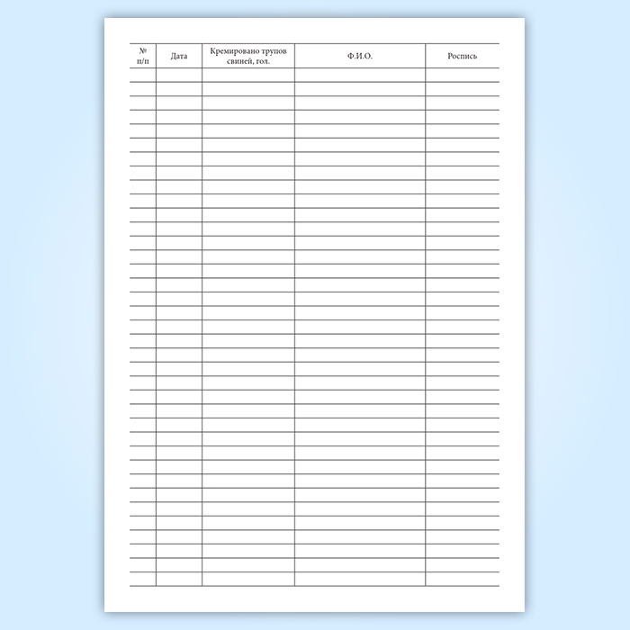 Журнал кремации трупов свиней в Черкесске купить