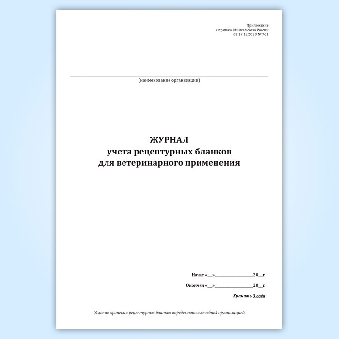 Журнал учета рецептурных бланков для ветеринарного применения в Черкесске купить