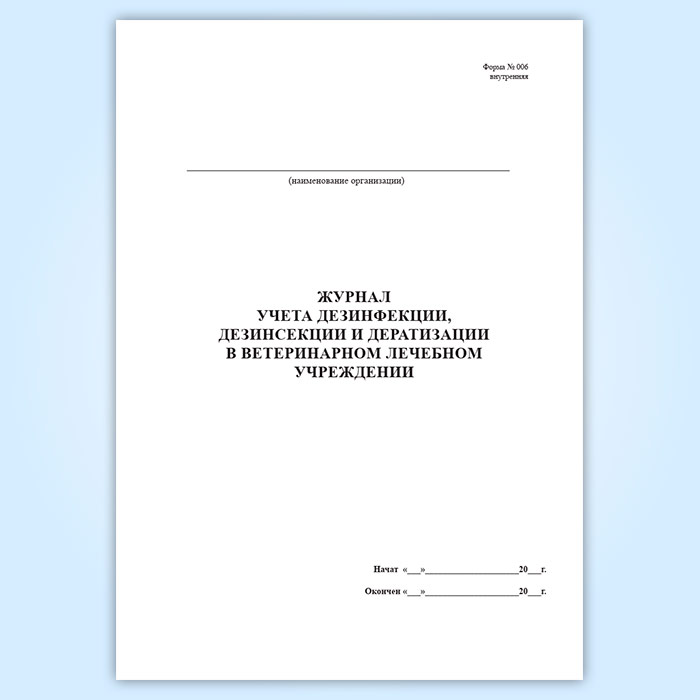Журнал учета дезинфекции ветеринарного лечебного подразделения (форма № 006 вн.) в Черкесске купить
