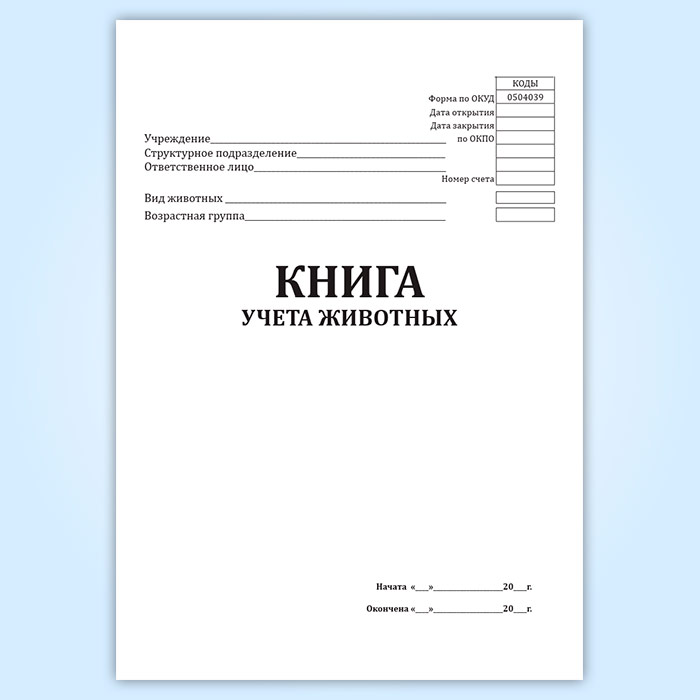 Книга учета животных (форма 0504039) в Черкесске купить
