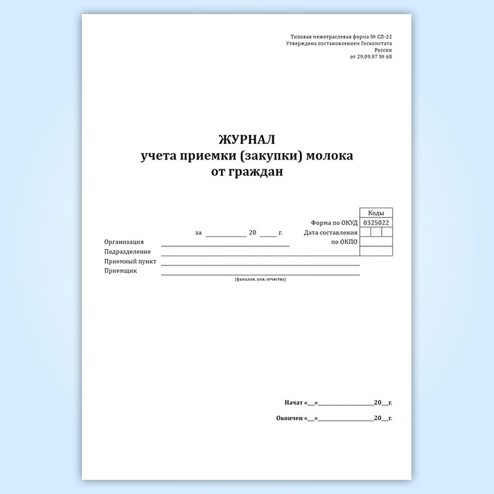 Журнал учета приемки (закупки) молока от граждан (форма СП-22) в Черкесске купить