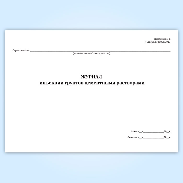 Журнал инъекции грунтов цементными растворами (СП 361.1325800.2017) в Черкесске купить
