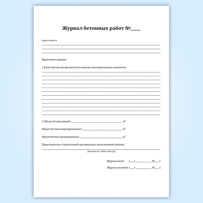 Журнал бетонных работ (форма 12.1, СП 392.1325800.2018) в Черкесске купить