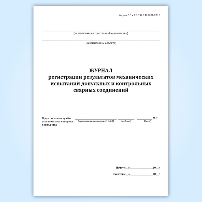 Журнал регистрации результатов механических испытаний допускных и контрольных сварных соединений (форма 6.3) в Черкесске купить