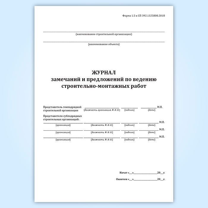 Журнал замечаний и предложений по ведению строительно-монтажных работ (форма 1.5, СП 392.1325800.2018) в Черкесске купить
