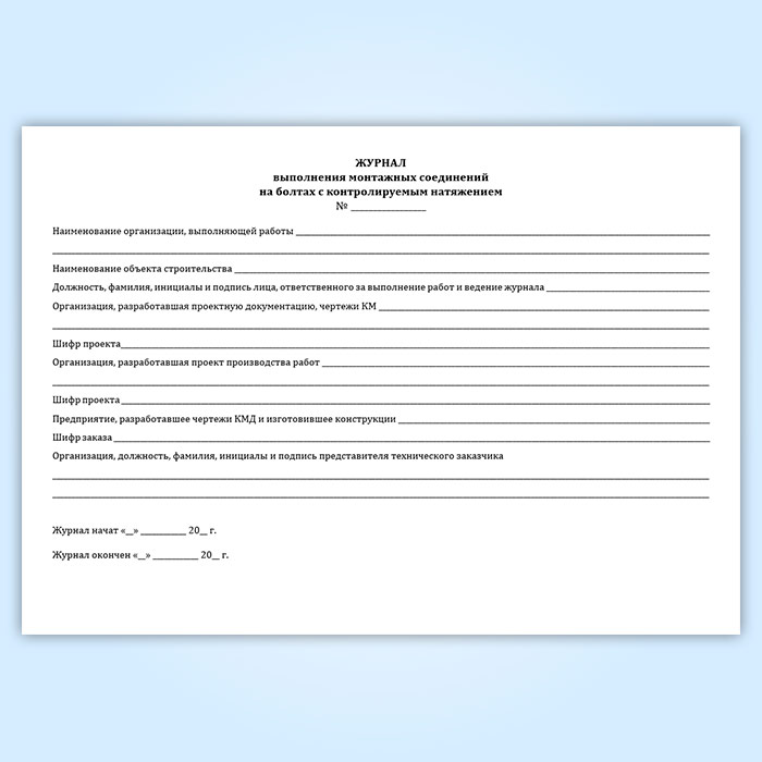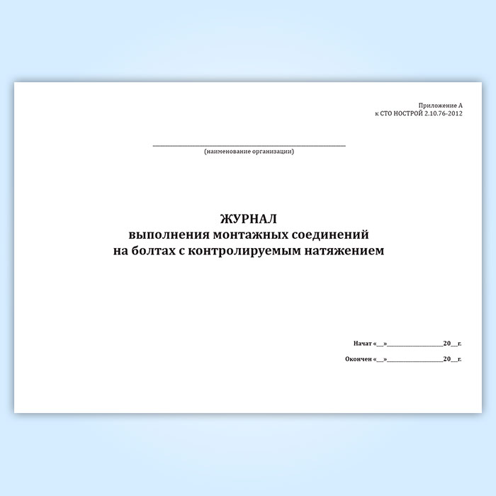 Журнал выполнения монтажных соединений на болтах с контролируемым натяжением (СТО НОСТРОЙ 2.10.76-2012) в Черкесске купить