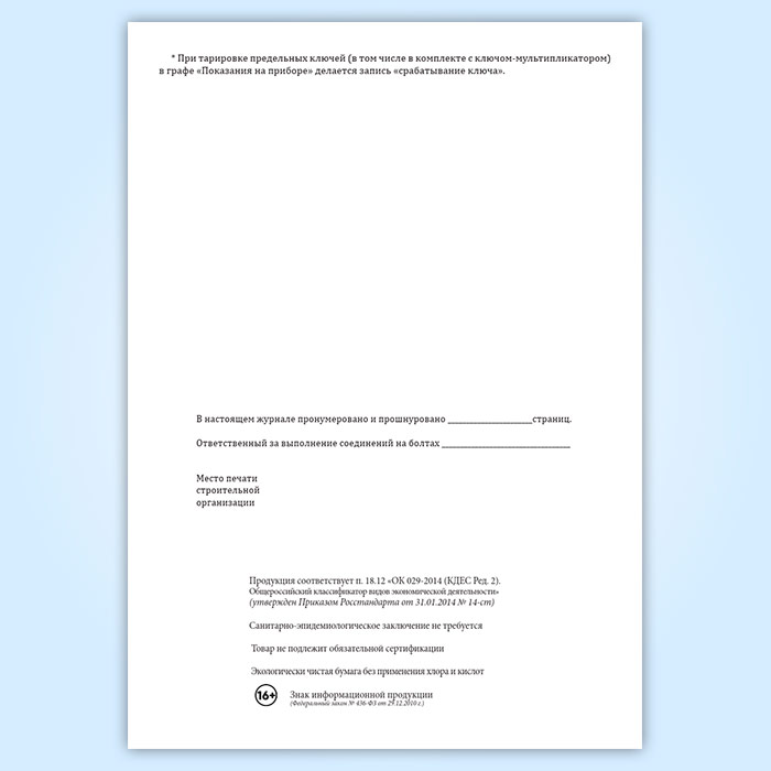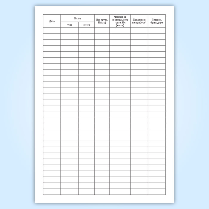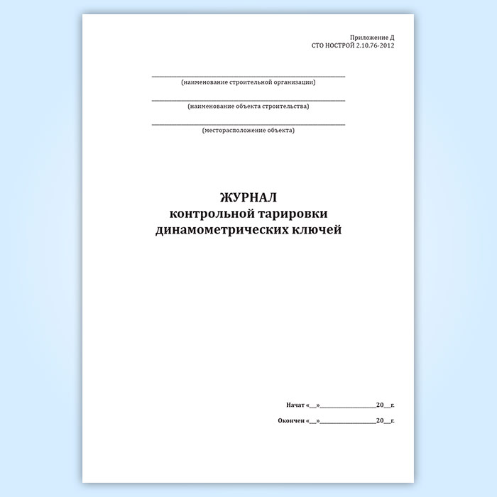 Журнал контрольной тарировки динамометрических ключей (СТО НОСТРОЙ 2.10.76-2012) в Черкесске купить