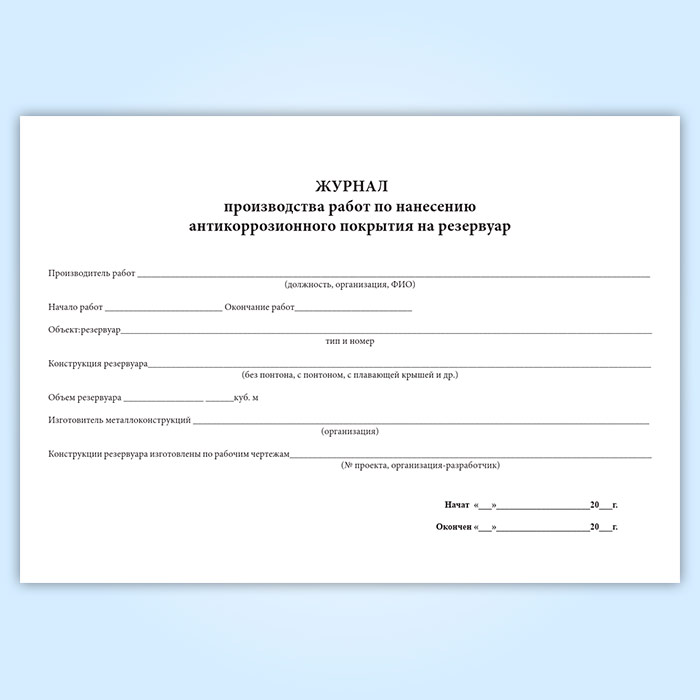 Журнал производства работ по нанесению антикоррозионного покрытия на резервуар в Черкесске купить