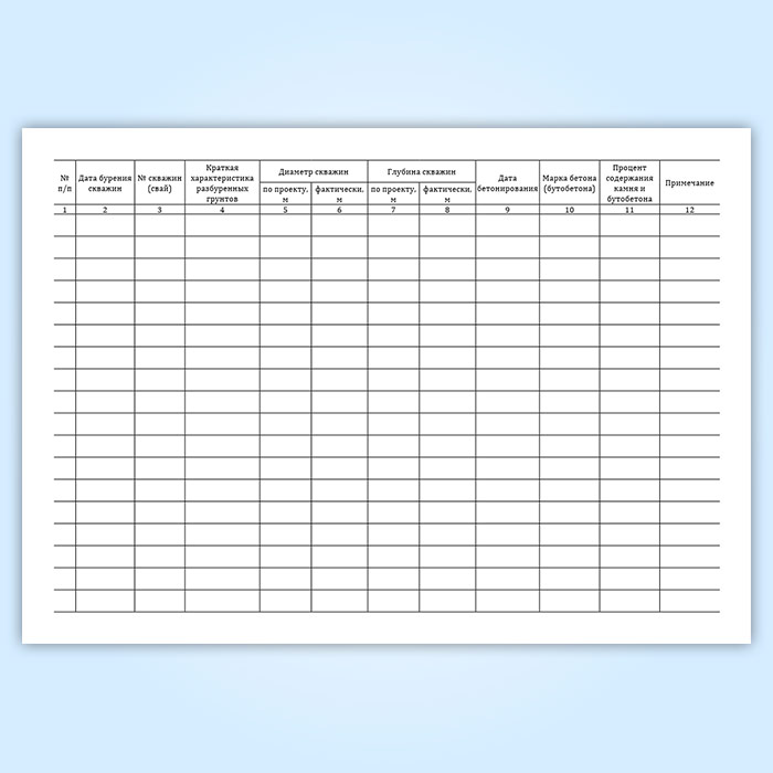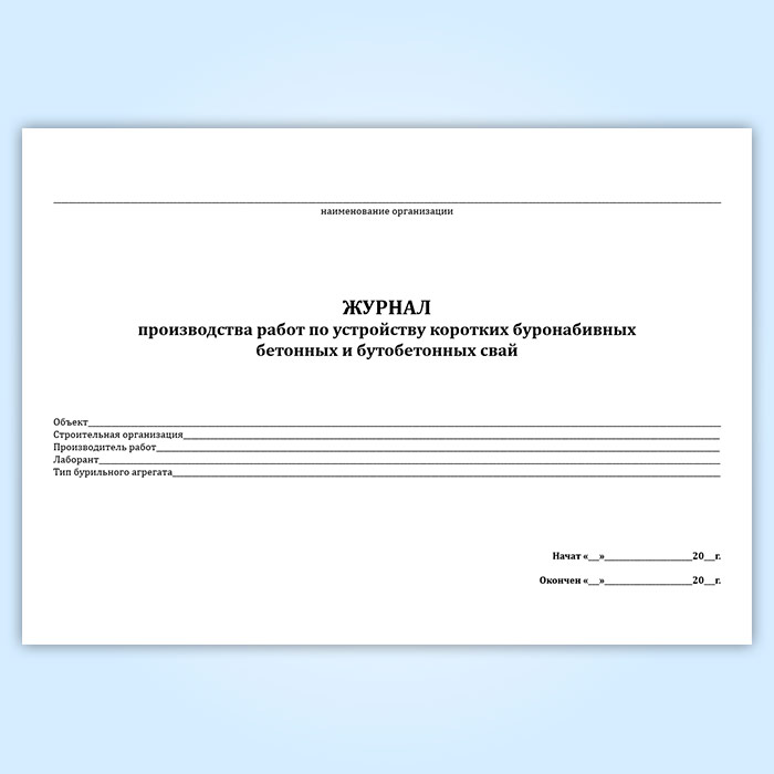 Журнал производства работ по устройству коротких буронабивных бетонных и бутобетонных свай в Черкесске купить