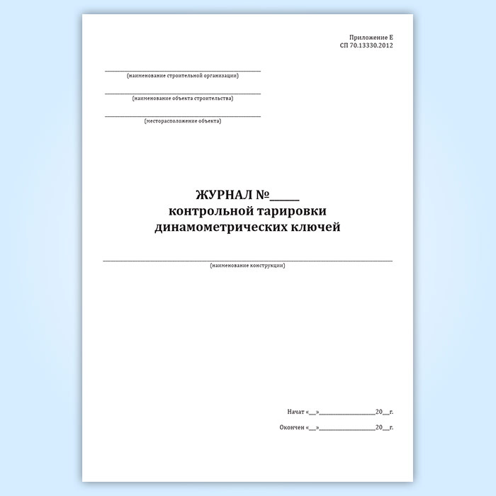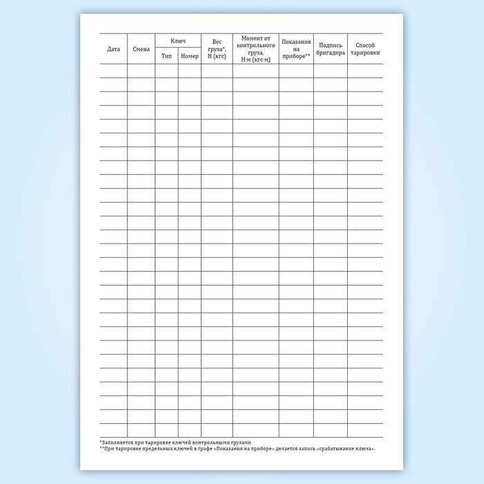 Журнал контрольной тарировки динамометрических ключей в Черкесске купить