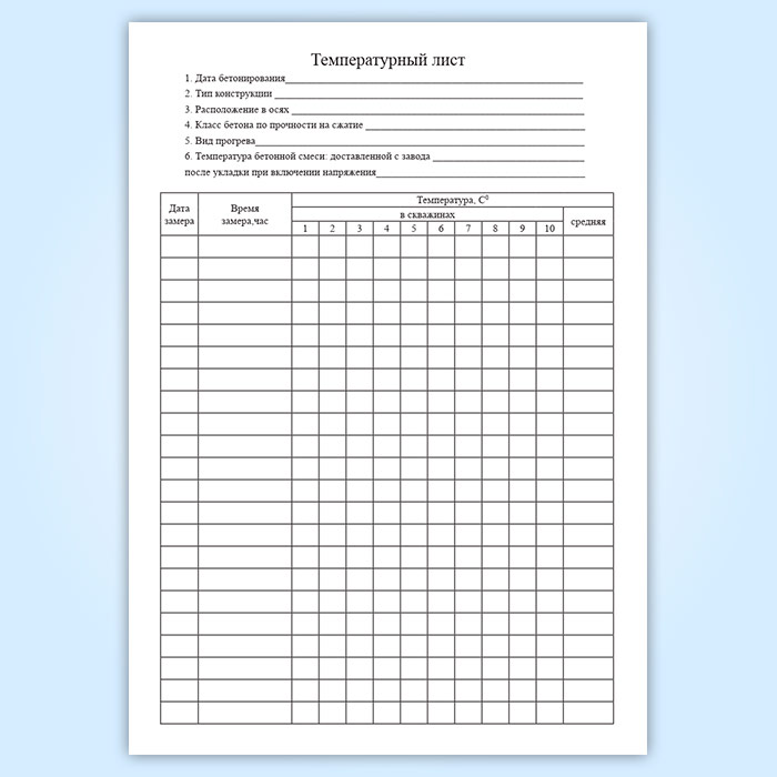Журнал ухода за бетоном (с графиком продолжительности твердения) в Черкесске купить