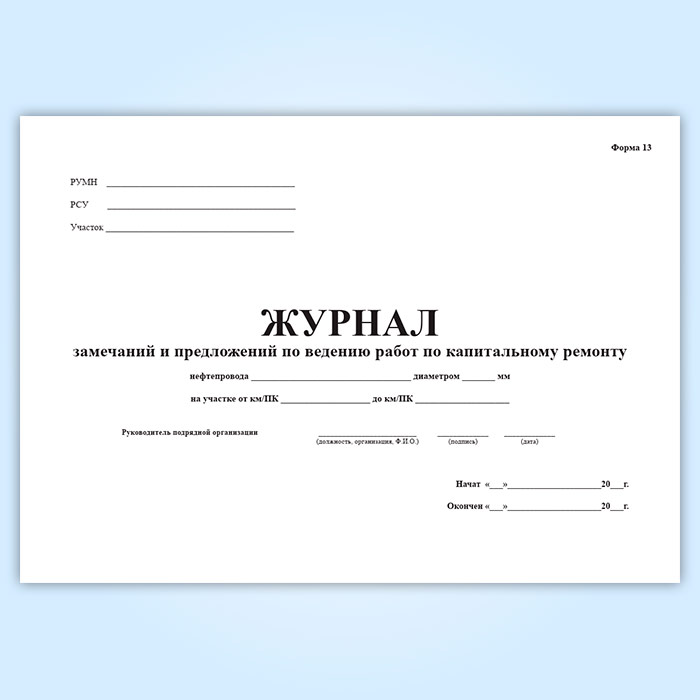 Журнал замечаний и предложений по ведению работ по капитальному ремонту в Черкесске купить