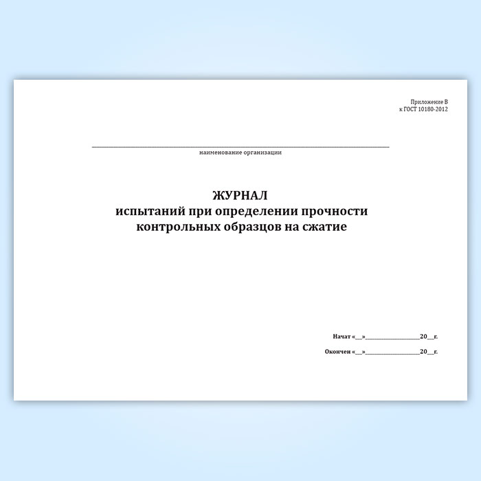 Журнал испытаний при определении прочности контрольных образцов на сжатие в Черкесске купить