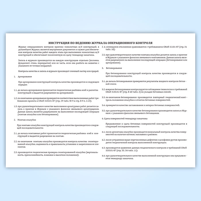 Журнал операционного контроля приемки монолитных железобетонных конструкций в Черкесске купить