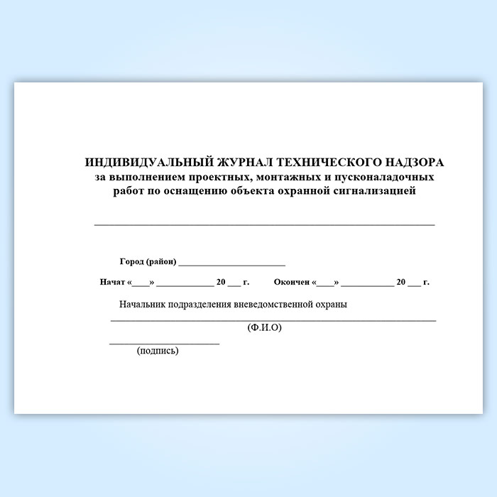 Индивидуальный журнал технического надзора за выполнением проектных, монтажных и пусконаладочных работ по оснащению объекта охранной сигнализацией в Черкесске купить