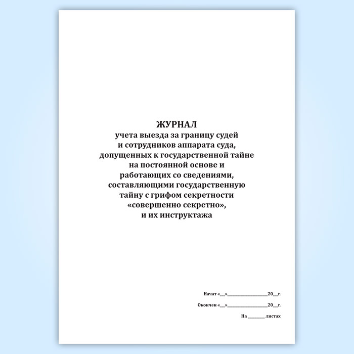 Журнал учета выезда за границу судей и сотрудников аппарата суда, допущенных к государственной тайне на постоянной основе и работающих со сведениями, составляющими государственную тайну с грифом секретности «совершенно секретно», и их инструктажа в Черкесске купить