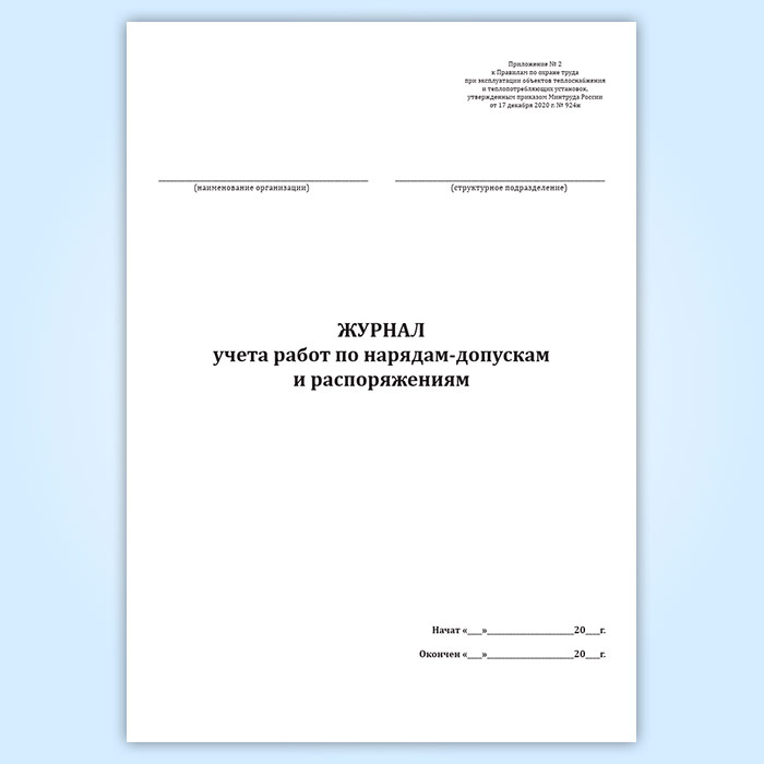 Журнал учета работ по нарядам-допускам и распоряжениям (для объектов теплоснабжения и теплопотребляющих установок) в Черкесске купить