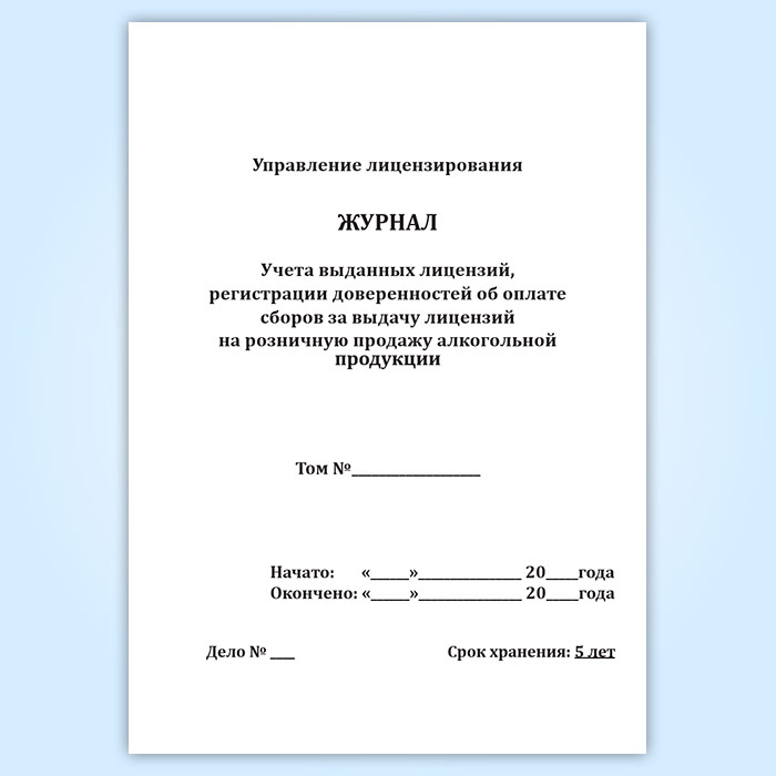 Журнал учета выданных лицензий, регистрации доверенностей об оплате сборов за выдачу лицензий на розничную продажу алкогольной продукции в Черкесске купить