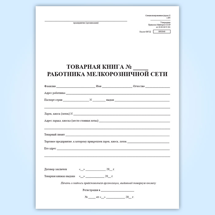 Товарная книга работника мелкорозничной сети. Специализированная (форма № 1-РТ) в Черкесске купить
