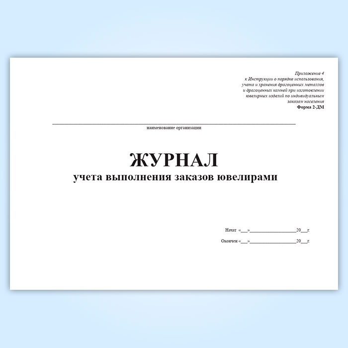 Журнал учета выполнения заказов ювелирами (форма 2-ДМ) в Черкесске купить
