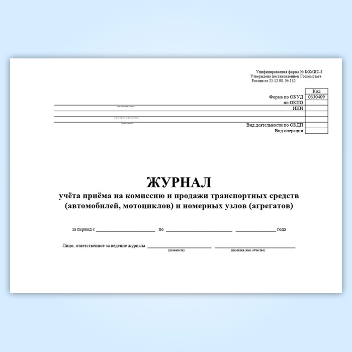 Журнал учета приема на комиссию и продажи транспортных средств (автомобилей, мотоциклов) и номерных узлов (агрегатов) (форма № КОМИС-8) в Черкесске купить