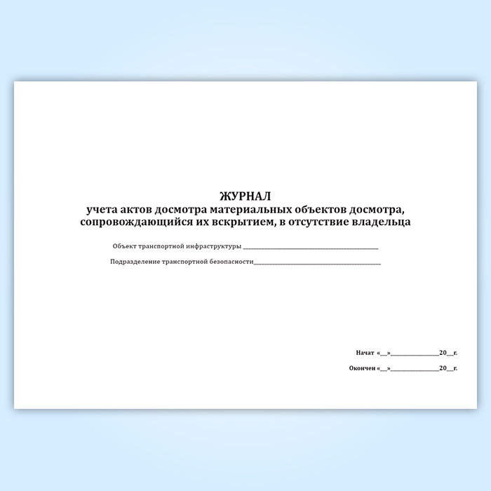 Журнал учета актов досмотра материальных объектов досмотра, сопровождающийся их вскрытием, в отсутствие владельца в Черкесске купить