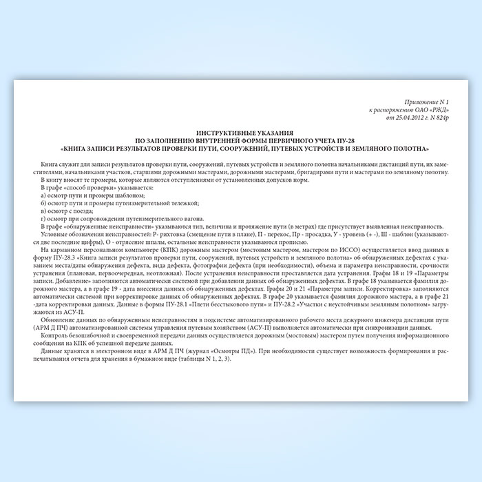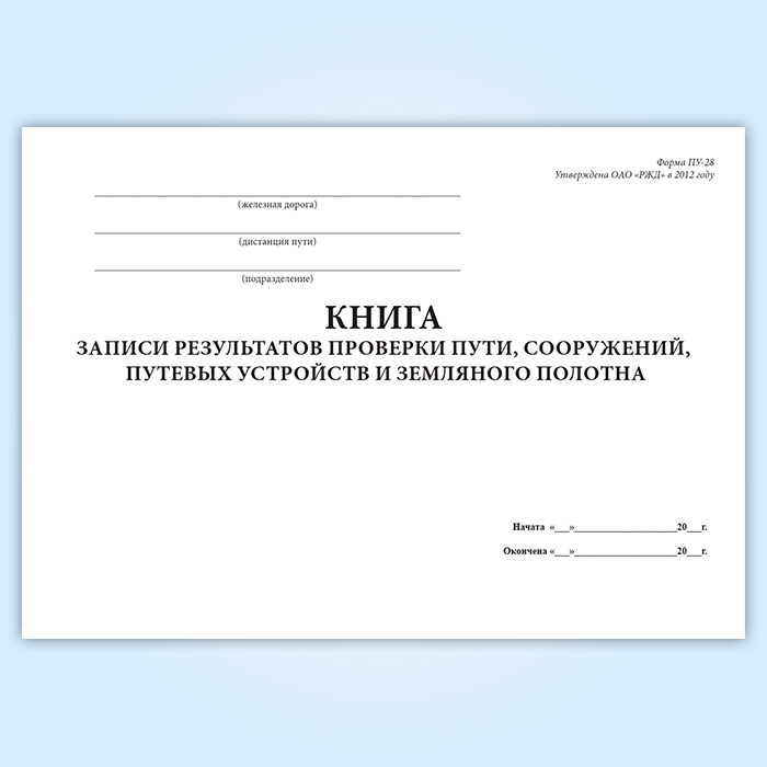 Книга записи результатов проверки пути, сооружений, путевых устройств и земляного полотна (форма ПУ-28) в Черкесске купить