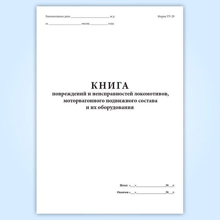 Книга повреждений и неисправностей локомотивов, моторвагонного подвижного состава и их оборудования (форма ТУ-29) в Черкесске купить