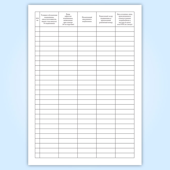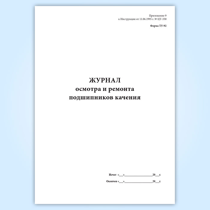 Журнал осмотра и ремонта подшипников качения (форма ТУ-92) в Черкесске купить