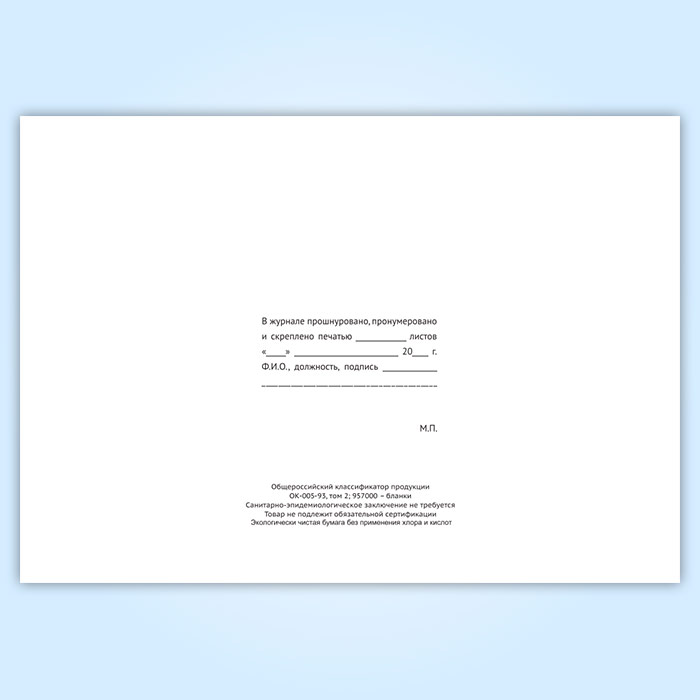 Вы получаете печатную продукцию прошнурованной и c местом для вашей печати в соответствии с действующими нормативными документами: