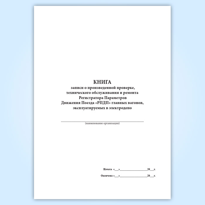 Книга записи о произведенной проверке, технического обслуживания и ремонта Регистратора Параметров Движения Поезда «РПДП» главных вагонов, эксплуатируемых в электродепо в Черкесске купить
