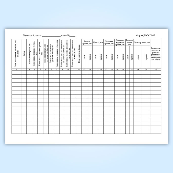 Книга состояния колесных пар скоростных/высокоскоростных электропоездов (форма ДОСС У-17) в Черкесске купить