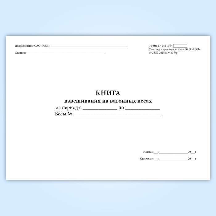 Книга взвешивания на вагонных весах (форма ГУ-36ВЦ/Э) в Черкесске купить