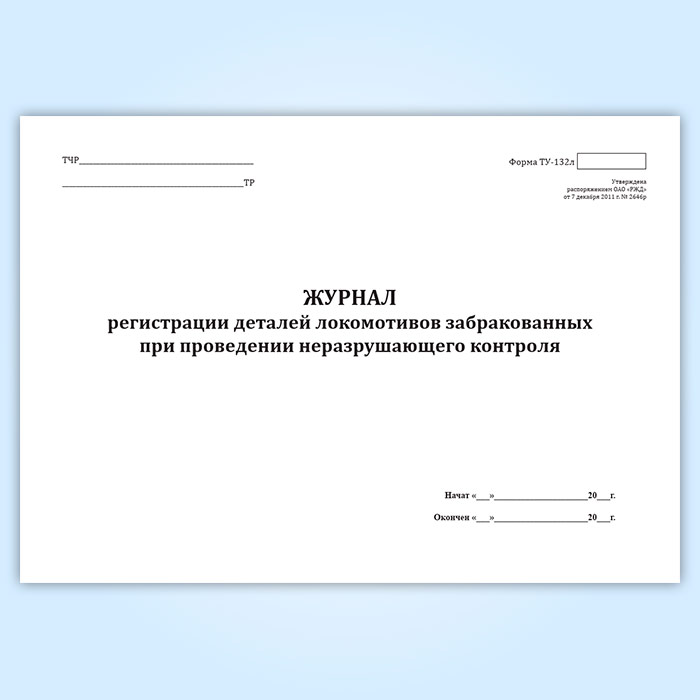 Журнал регистрации деталей локомотивов, забракованных при проведении неразрушающего контроля (форма ТУ-132л) в Черкесске купить