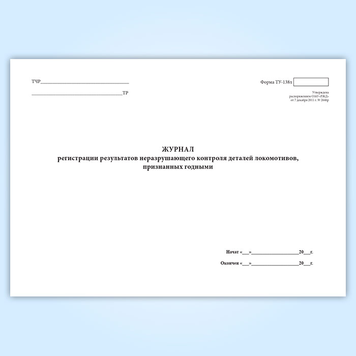 Журнал регистрации результатов неразрушающего контроля деталей локомотивов, признанных годными (форма ТУ-138л) в Черкесске купить