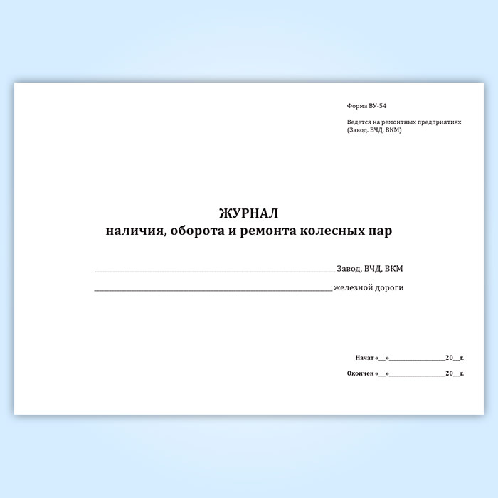 Журнал учета наличия, оборота и ремонта колесных пар (форма ВУ-54) в Черкесске купить